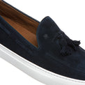 Sneaker with rubber cupsole made of soft blue suede. The iconic Brera loafer is revisited in a sporty feel combining casual style with the timeless elegance that sets it apart. Rubber sole with custom tread.