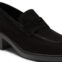 Band loafer with a rounded shape, made of soft black suede with a milleraies print. Extralight rubber sole with 40 mm heel. A casual shoe and a must-have for the winter season.