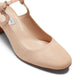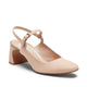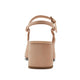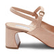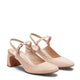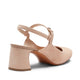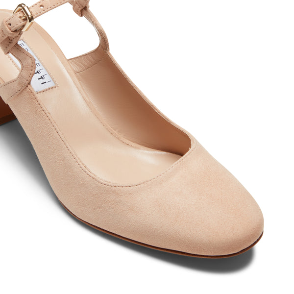 Refined slingback sandal with ankle strap made of soft peach suede. Sophisticated footwear that can be worn anywhere for timeless elegance. Comfortable to wear thanks to the medium heel.
