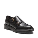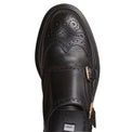 Double-buckle Derby shoe that evokes a masculine, sophisticated style, featuring the brogue motif inspired by Anglo-Saxon tradition. Finished with subtle abrasive brushing; the meticulous craftsmanship enhances the leather’s natural sheen. The unique rubber sole with non-slip grip ensures comfort and superior flexibility.