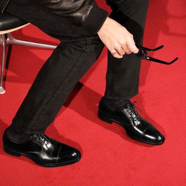 - Rock - Francesina realizzata in vitello con superficie liscia e lucida con una rifinitura più scura sulla punta e sulla parte dello sperone, che rispecchia uno stile grintoso. Il motivo decorativo è realizzato attraverso le cuciture. Una scarpa dalla suola con doppio fondo in cuoio.