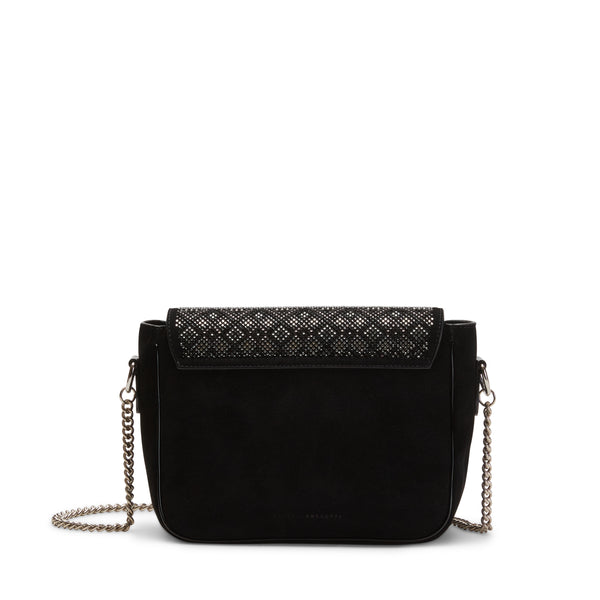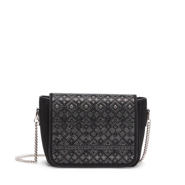 El bolso cruzado de la línea Rossetti Décor se viste de elegancia para la noche en una refinada versión en ante negro caracterizada por la aplicación de pedrería en diseño de rombos que aporta luz y movimiento. Las líneas básicas completan el diseño refinado, aportando al bolso un aspecto sofisticado.