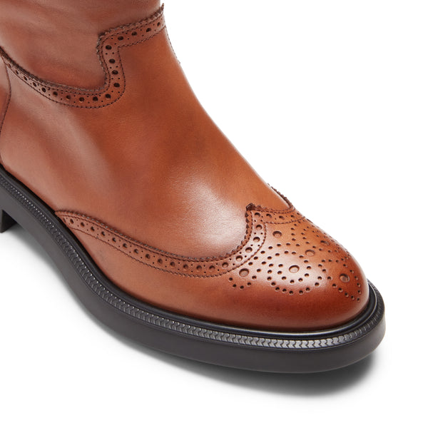 Bota casual y versátil confeccionada en piel de color cuero. El zapato está acabado con cepillos abrasivos y un exclusivo tratamiento que da más brillo al cuero. La particular fabricación de la suela de goma con agarre antideslizante garantiza comodidad y máxima flexibilidad.