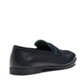 Mocasín con banda de la línea Yacht, realizado en suave piel de ciervo de color azul marino con grano natural. El forro transpirable de rizo, la plantilla de piel y la fina suela de goma ultraligera hacen que el zapato sea ideal para el verano