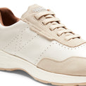 Zapatilla de aspecto dinámico y deportivo fabricada en piel lisa de color arroz combinada con ante a juego. En los laterales de la pala, los orificios hacen que sea una zapatilla fresca, perfecta para el verano. Suela especial de goma bicolor.
