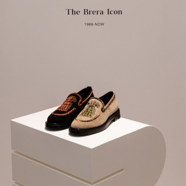 Le mocassin Brera continue de briser les codes en se présentant, cette fois, dans sa nouvelle version plus jeune avec des pampilles brodés sur la tige, confirmant le caractère iconique et polyvalent de ces légendaires glands introduits par Renzo Rossetti pour la première fois dans le années 1960. Un élément décoratif tellement novateur pour l'époque qu'il représente encore aujourd'hui le symbole d'une véritable révolution.