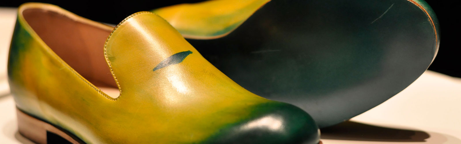 Cette famille comprend également des mocassins vernis à la main avec la technique Toledo Bicolor qui, comme les chaussures à lacets, se distinguent par leur effet ornemental unique. Les artisans ont joué avec les couleurs, combinant les nuances pour faire apparaître en trompe-l’œil la bande du mocassin. Le résultat est un produit d’excellence, qui s’inspire de personnages emblématiques de la culture italienne du XVIIe siècle comme Arlequin.