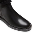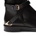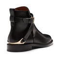 Stivaletto Magenta realizzato in pelle nera con effetto anticato artigianale. Il modello iconico è caratterizzato da dettagli ricercati: cinturini con profili a taglio vivo cerati e staffa logata in metallo dorato incorporata nel tacco. Look maschile che rivela una raffinata connotazione artigianale. Suola in cuoio con inserto in gomma.