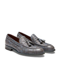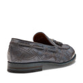 Les emblématiques mocassins Brera s’habillent pour l'été avec une version exclusive réalisée en cuir souple de couleur bleu jean teint sur tige finie. Le cuir est trempé dans la couleur puis fini avec des brosses abrasives par des mains expertes. Ils se caractérisent par une finition au laser exclusive qui dessine un jeu de nœuds marins, pour un style de vacances raffiné. Semelle en cuir peinte à la main.