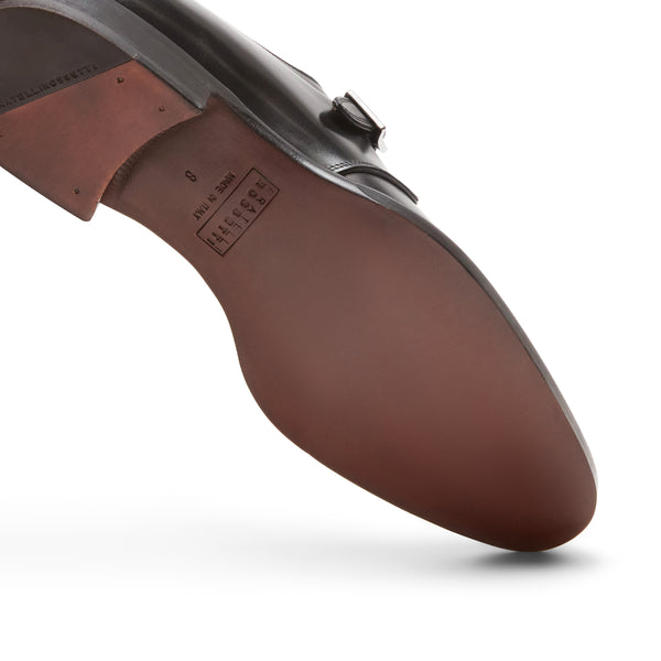 Derbys raffinés à une boucle au look sophistiqué, confectionnés dans un cuir lisse et souple. Le traitement artisanal exclusif donne à la chaussure une plus grande brillance. Semelle en cuir.