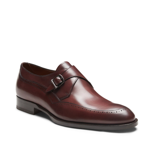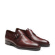 Derbies à boucle unique exclusives, confectionnées en cuir lisse teinté par tamponnage à la main de couleur bordeaux. Un travail artisanal expert crée un effet particulier avec des nuances de couleurs plus profondes. Ces chaussures se caractérisent par de petites perforations et des lignes découpées au laser qui soulignent sa tige avec une touche haut de gamme. Semelle en cuir avec demi-talon en gomme.