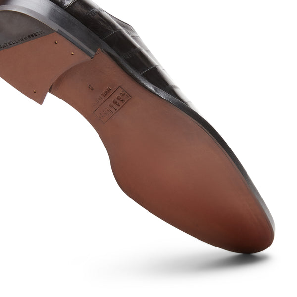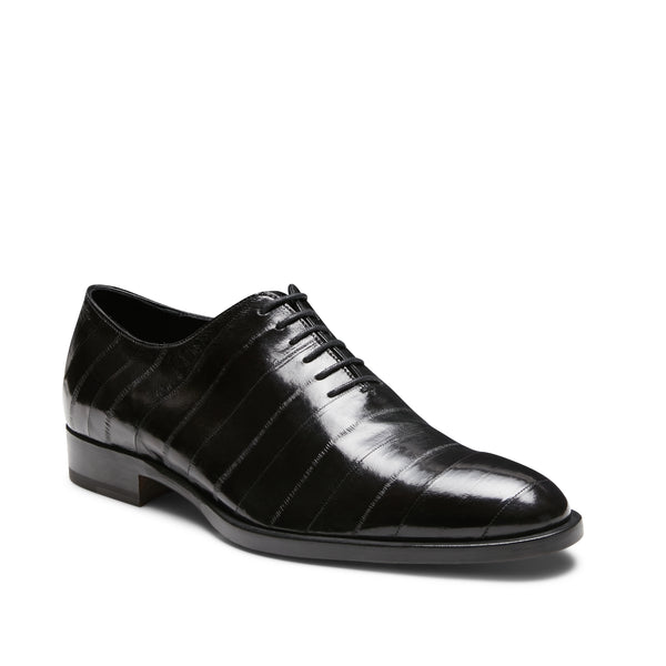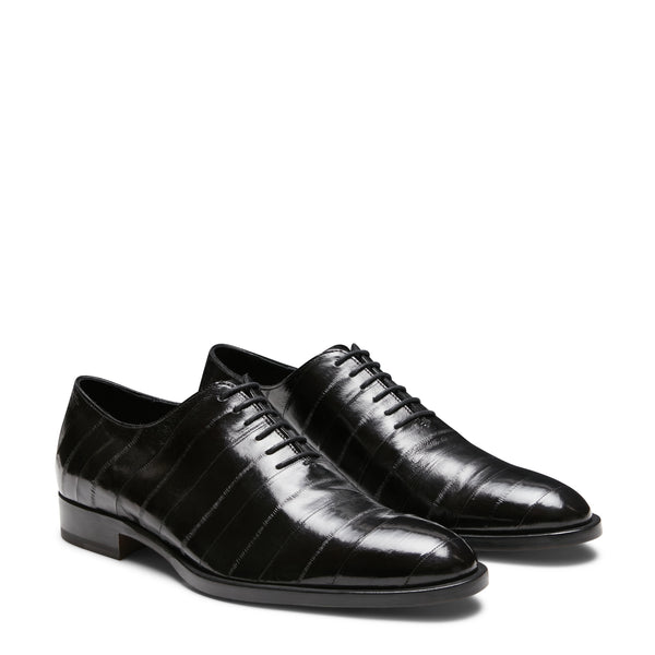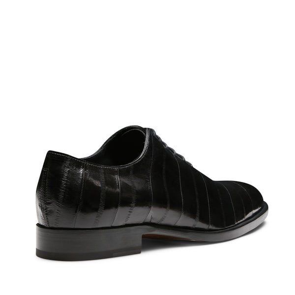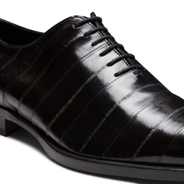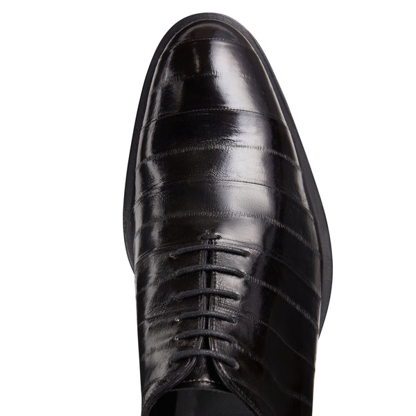 Richelieu raffiné en cuir d'anguille noir de première qualité qui se caractérise par son éclat naturel. Le grain du cuir ajoute de la profondeur et du mouvement, rendant chaque paire unique et exclusive.Art. 15088