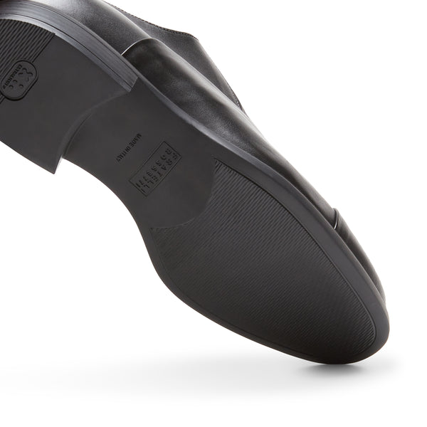 Richelieus à bout renforcé, confectionnés dans un cuir souple et lisse noir avec une finition exclusive qui utilise des brosses abrasives pour lui donner un aspect plus brillant. Des chaussures qui allient lignes contemporaines et style raffiné. La semelle flexible en latex avec trépointe lisse et crans antidérapants garantit un très haut niveau de confort.