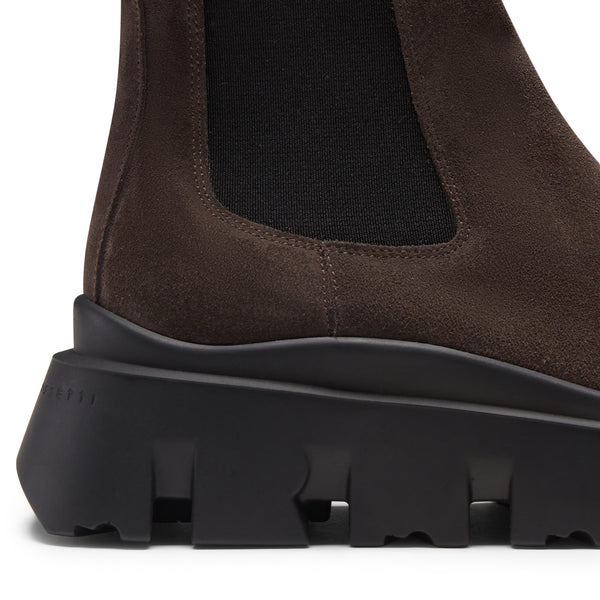 Style audacieux et contemporain pour ces grosses chaussures en daim. Les élastiques sur les côtés caractérisent le style de ce modèle et les rendent très confortables. La semelle de 40 mm en gomme est faite d’un matériau léger et résistant et est caractérisée par un dessous cranté estampé de la lettre « R », le logo emblématique de la marque Fratelli Rossetti. Semelle intérieure amovible et respirante.