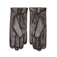 Raffinato guanto da uomo realizzato in morbida nappa marrone con tre cordoni sopramano cuciti a mano. Sottomano con elastico. Particolare dettaglio sul polso è messo in evidenza il profilo della fodera.
