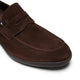 Mocassino con fascetta dal look classico realizzato in morbida pelle scamosciata idrorepellente color cacao. Calzatura ideale per chi predilige uno stile tradizionale, senza rinunciare al comfort e alla versatilità. Fondo personalizzato in lattice naturale antiscivolo che garantisce una calzata confortevole.