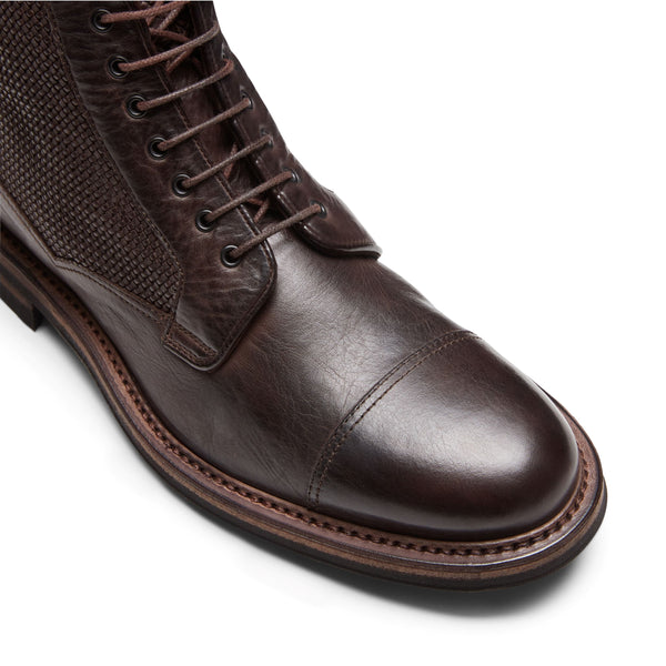 Bottines à lacets raffinées, au style décontracté, en cuir teint en fût avec une tige finie avec un effet nuancé original. Les empiècements finement agencés soulignent la connotation artisanale. Semelle en cuir avec insert en gomme.<br>Art. 14175