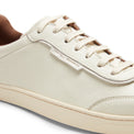 Sneakers au look vintage interprété dans une touche contemporaine, réalisées en cuir souple couleur riz. Des chaussures qui allient savoir-faire artisanal et style. La semelle en caoutchouc naturel très flexible confère légèreté et confort inégalés à la chaussure.