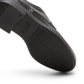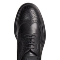 Derby brogue dal look contemporaneo, ispirata alle forme tradizionali delle calzature anglosassoni. Stile androgino che si caratterizza da bucature e frastagli lungo tutta la tomaia. Realizzata in pelle nera rifinita con spazzole abrasive che donano al pellame maggiore lucentezza. La particolare costruzione della suola in gomma con grip antiscivolo garantisce comfort e massima flessibilità.