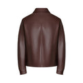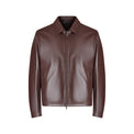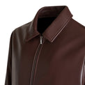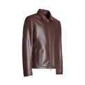 Blouson en nappa souple de couleur moût au look moderne et raffiné. Ce modèle se caractérise par un col style chemise et une fermeture zippée à double curseur sur le devant. Deux poches à ouverture verticale complètent son look épuré.
