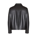 Blouson en nappa noir souple au look moderne et raffiné. Ce modèle se caractérise par un col style chemise et une fermeture zippée à double curseur sur le devant. Deux poches à ouverture verticale complètent son look épuré.