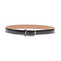 Elegante cintura da donna con asta cucita realizzata in pelle verniciata. Fibbia oro chiaro con logo Fratelli Rossetti. Altezza 25 mm.