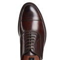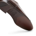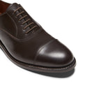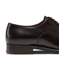 Francesina con puntale sobria ed elegante, ispirata alle forme tradizionali anglosassoni. Realizzata in pelle liscia ebano rifinita con spazzolatura abrasiva che conferisce lucentezza e una maggiore intensità cromatica su punta e tallone. Suola in cuoio caratterizzata dalla pregevole lavorazione Goodyear che garantisce comfort e durata nel tempo.