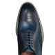 Eleganza senza tempo per la francesina dalla forma affusolata. Realizzata in pelle blu marine con un'esclusiva lavorazione artigianale che dona alla calzatura un leggero effetto anticato e una maggiore lucentezza. Le bucature disegnano il puntale e i profili sulla tomaia. Suola in cuoio dipinta a mano.