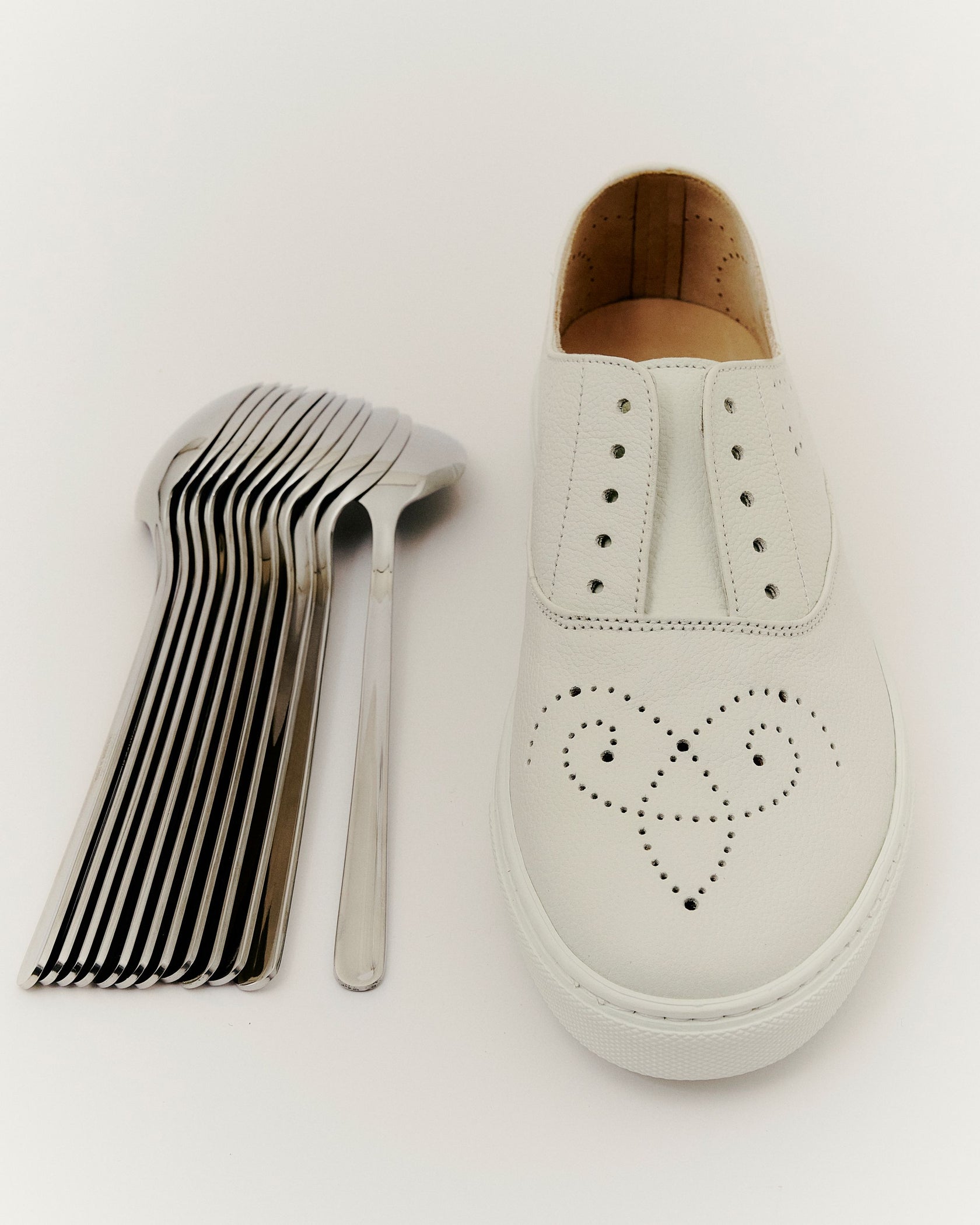 A completare la proposta, il tema Black & White, interpretato attraverso l’originale motivo stracciatella, dove il gioco dei contrasti si sposa con l’eleganza di linee senza tempo. All’interno di questa selezione rivivono modelli iconici dell’archivio storico, come il mocassino fascetta e la décolleté con profili in piping, ripensati in chiave contemporanea per un perfetto equilibrio tra tradizione e innovazione