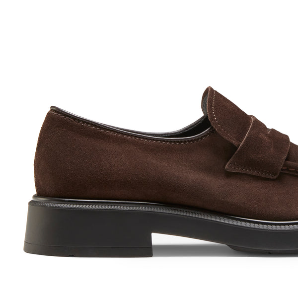 Mocassino con fascetta realizzato in morbida pelle scamosciata color cacao. Caratterizzato da un look maschile ed essenziale, ispirato alla tradizione anglosassone. La suola in gomma leggera e resistente assicura comfort, rendendo questa calzatura funzionale e versatile.
