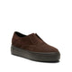 Iconica sneaker Hobo Sport con dettagli di forature realizzata in morbida pelle scamosciata idrorepellente. Casual e raffinata può essere indossata senza lacci. Soletta interna estraibile e traspirante. La suola a cassetta realizzata in gomma con battistrada personalizzato è alta 55mm.