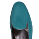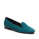 Slipper im Tailored-Look aus weichem, petrolfarbenem Samt. Das Modell zeichnet sich durch seine schlichte und elegante Linie aus, die durch den Saum in Kontrastfarbe betont wird. Perfekt, um Outfits mit einer raffinierten und femininen Note zu vervollständigen. Schwarze Ledersohle passend zum Futter.