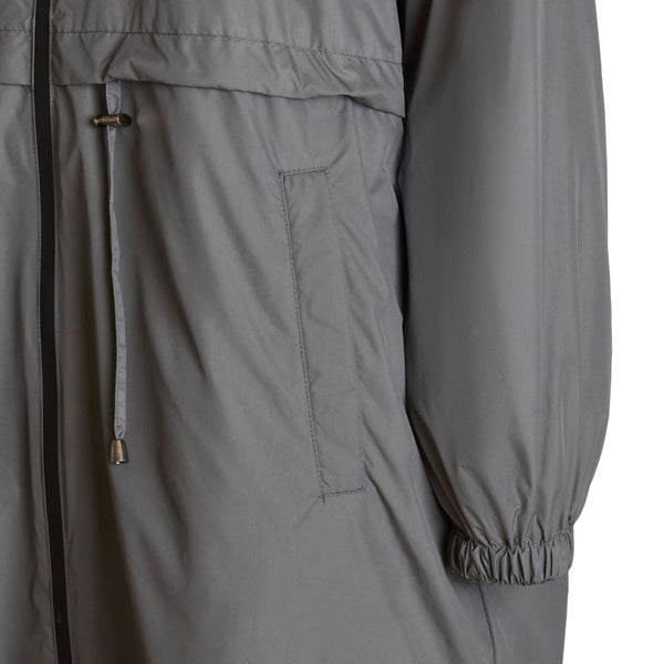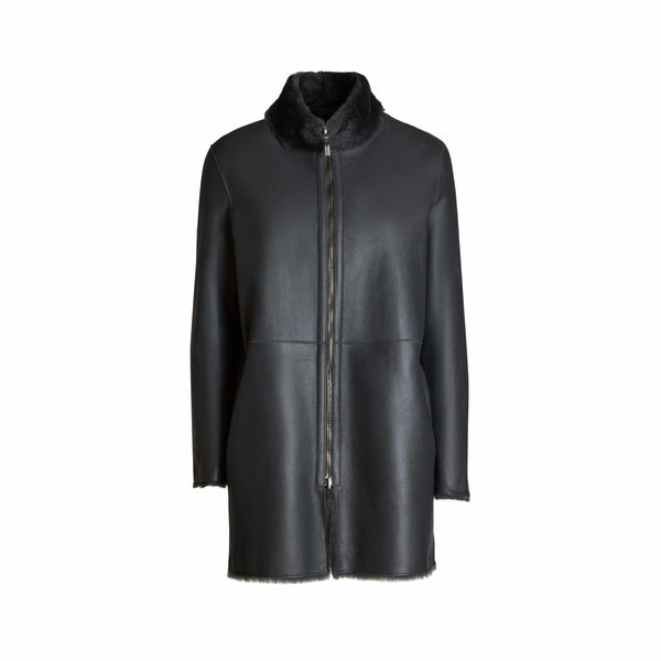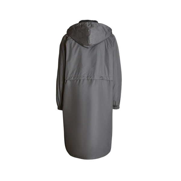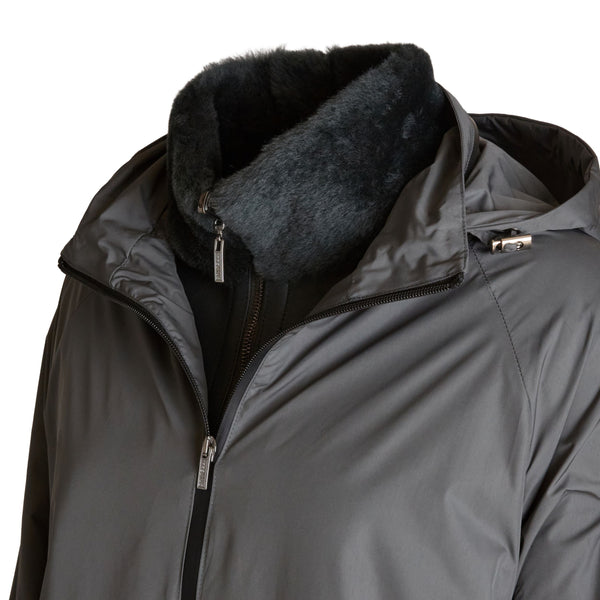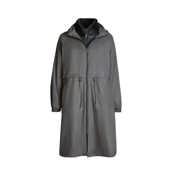 Questo modello combina lo stile raffinato con la funzionalità di due capi utilizzabili separatamente. Il parka in nylon leggero e impermeabile ha una vestibilità leggermente ampia che consente di indossarlo da solo o sopra al cappottino in shearling in colore in tono. Quest'ultimo è reversibile ed ha un design essenziale e versatile.