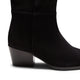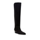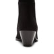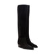 Sofisticada y decidida, esta bota cuissard está realizada en ante negro. Modelo caracterizado por su forma cónica y tacón ancho tipo campero, para un look glamuroso con aire campestre. El eje del tubo suave abraza la pierna mientras que la espalda contorneada ofrece un ajuste cómodo. Suela de cuero con inserto de goma. Art. 68151