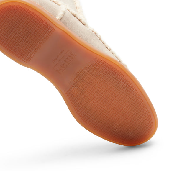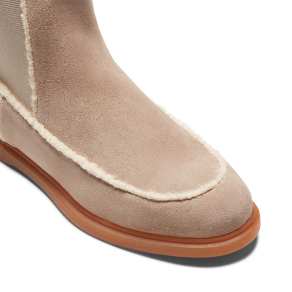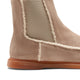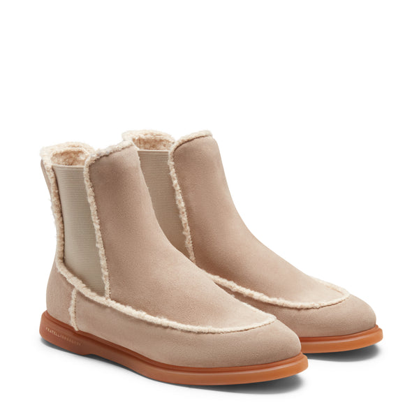 Botín Beatles realizado en ante. Calzado de aspecto informal con detalles de estilo como los perfiles de tejido efecto pelo rizado y la vira recubierta de la misma piel que la empella. Los elásticos laterales garantizan comodidad de calce y un ajuste perfecto. Suela de goma ligera.