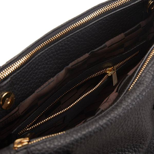Versátil y espacioso Tote bag de la línea Claire realizado en suave piel estampada con grano visible. Caracterizado por un diseño funcional y prácticos bolsillos con cremallera, es perfecto para la ciudad. Para llevar de la mano o al hombro gracias a la bandolera de piel ajustable y desmontable. H27xL37xW14.