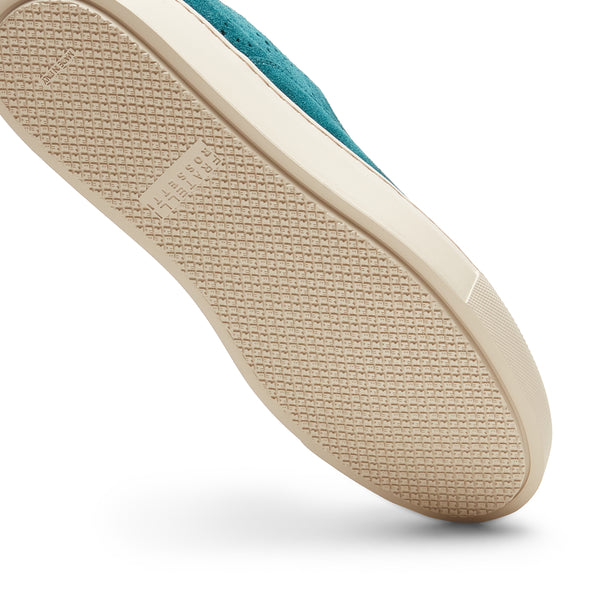 Icónica zapatilla Hobo Sport con detalles perforados confeccionada en suave ante color petróleo con tratamiento repelente al agua. Con suela de caja, este zapato casual y sofisticado también se puede usar sin cordones gracias a sus prácticas bandas elásticas internas. Suela de goma con dibujo antideslizante personalizado.Arte. 76104