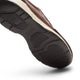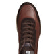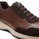 Zapatilla de estilo deportivo confeccionada en ante combinado con cuero liso de color caoba. El cuero se sumerge en el color y luego se acaba con cepillos abrasivos, una combinación perfecta entre un estilo deportivo y detalles sofisticados. El calzado presenta costuras en los laterales de la empella que crean diseños geométricos. Suela especial de goma bicolor.