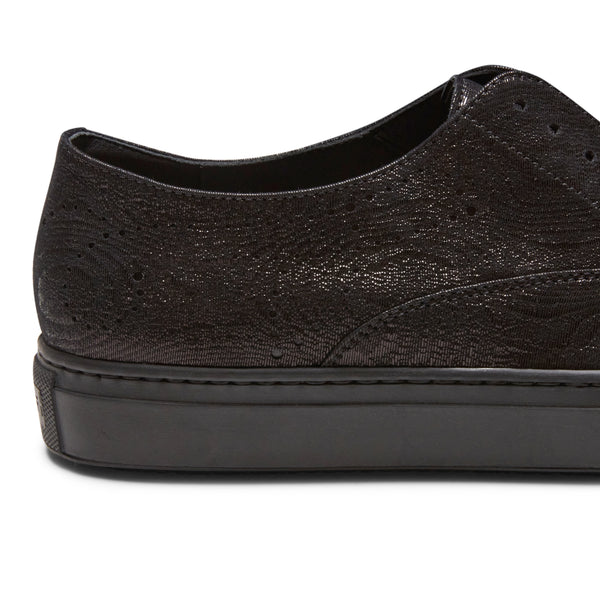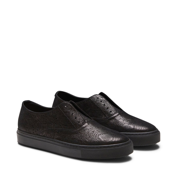 Basket emblématique Hobo Sport avec détails perforés en daim noir souple avec application de paillettes à effet métallisé. Dotée d'une semelle intérieure, cette chaussure décontractée et sophistiquée peut également être portée sans lacets grâce à des bandes élastiques internes pratiques. Semelle en caoutchouc avec bande de roulement antidérapante personnalisée.Art. 76104
